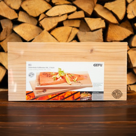 Für Grillerlebnisse der besonderen Art. Fisch, Fleisch oder Gemüse zum Grillen einfach auf die zuvor gewässerten Zedernholz-Grillbretter legen und ab damit auf den Grill. So bleibt das Grillgut wunderbar zart und erhält ein unverwechselbares Zedern-Raucharoma.