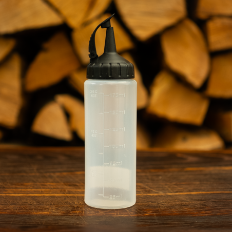 Die flexible Quetschflasche erlaubt präzises und sauberes Dosieren von Saucen, Dressings oder Fruchtpürees. Eine integrierte Messskala und der hygienische Bügelverschluss sorgen für einfache Handhabung und sichere Aufbewahrung – ideal für Küche und Gastronomie.