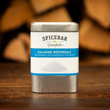 Das Kalahari Wüstensalz von der Spicebar stammt aus dem südlichen Afrika, direkt aus einer Region am Rand der Kalahari. Seine feine, angenehm zurückhaltende Salzigkeit macht es besonders vielseitig einsetzbar.