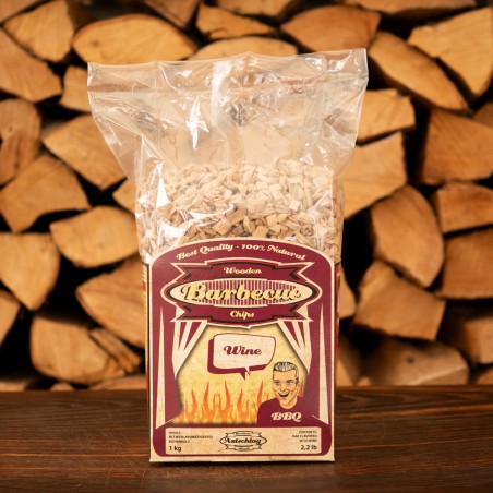 Die Räucherchips Wein (Wooden Barbecue Chips Wine) von Axtschlag bestehen aus hochwertigem Eichenholz, das mit Rotwein aromatisiert wurde, und sorgen für ein außergewöhnliches Grill- und Raucherlebnis. Das feine Weinaroma verbindet sich mit dem natürlichen Holzrauch zu einer eleganten, tiefen Geschmacksnote.